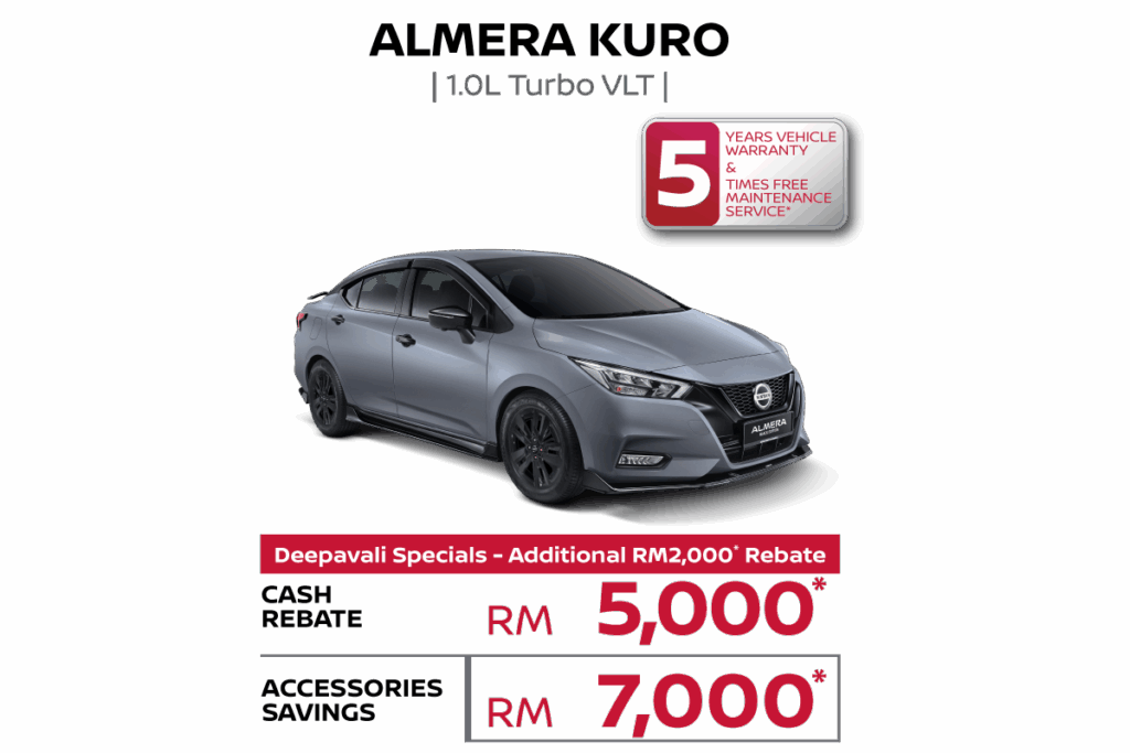 Elevate the allure of your Almera with the KURO package, meticulously crafted to transform your ride into a true standout.