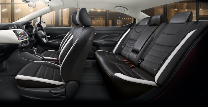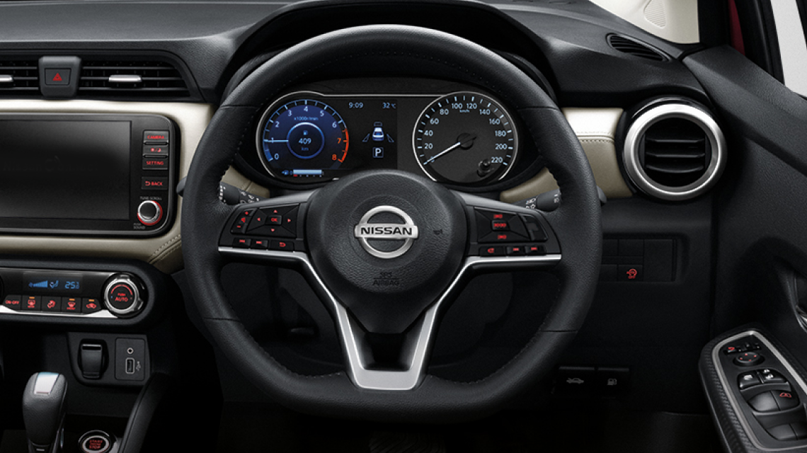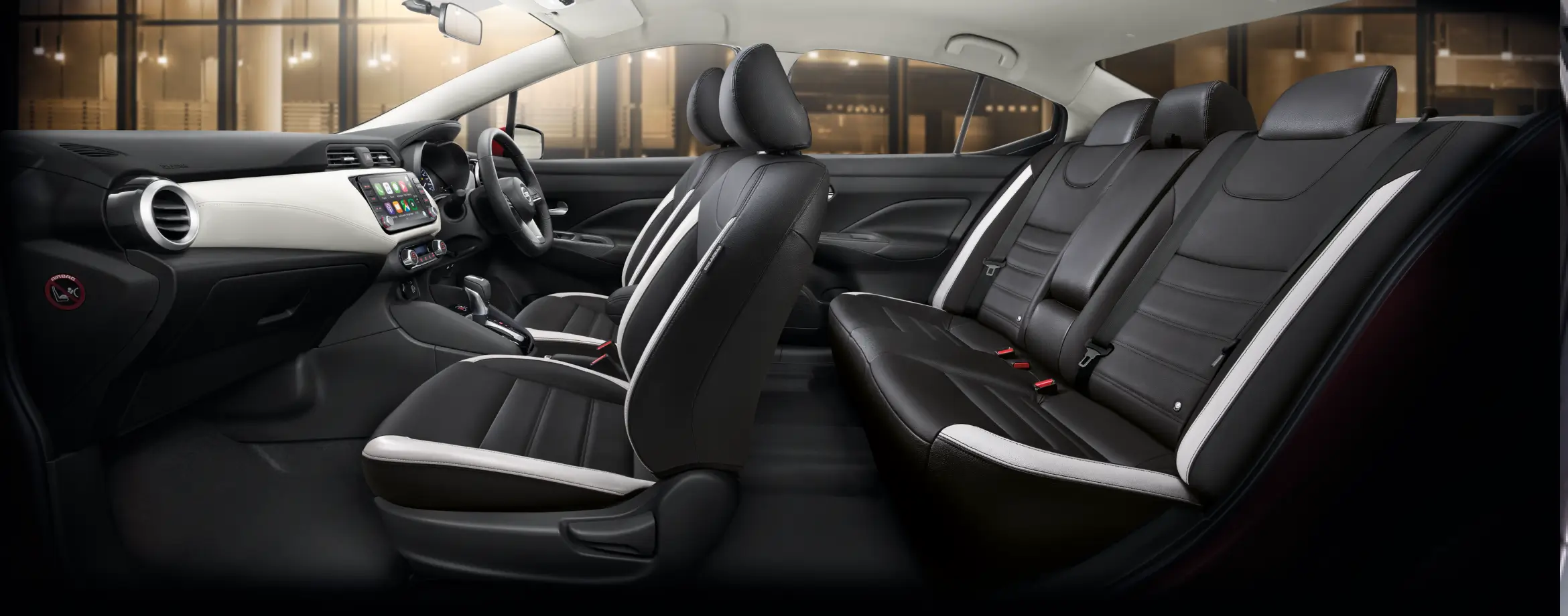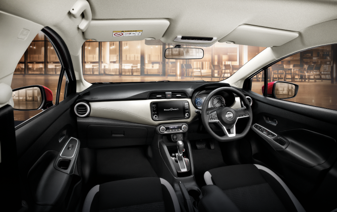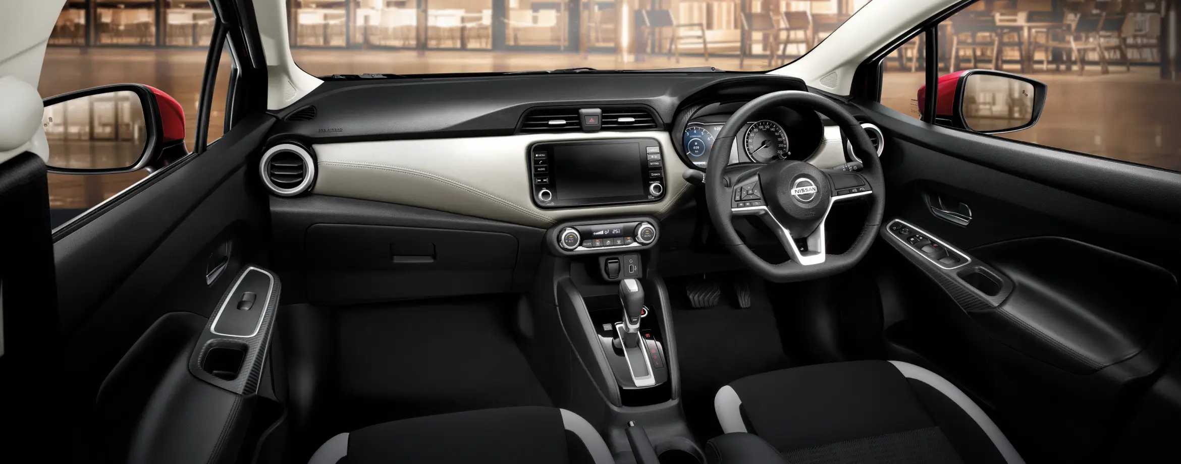 Step inside the Nissan Almera and prepare to be impressed. The sleek, gliding wing dashboard and refined finishes create an interior that feels both high-tech and high-class. Chrome, silver paint, piano black, and carbon fiber accents elevate the space, making every drive a delight.