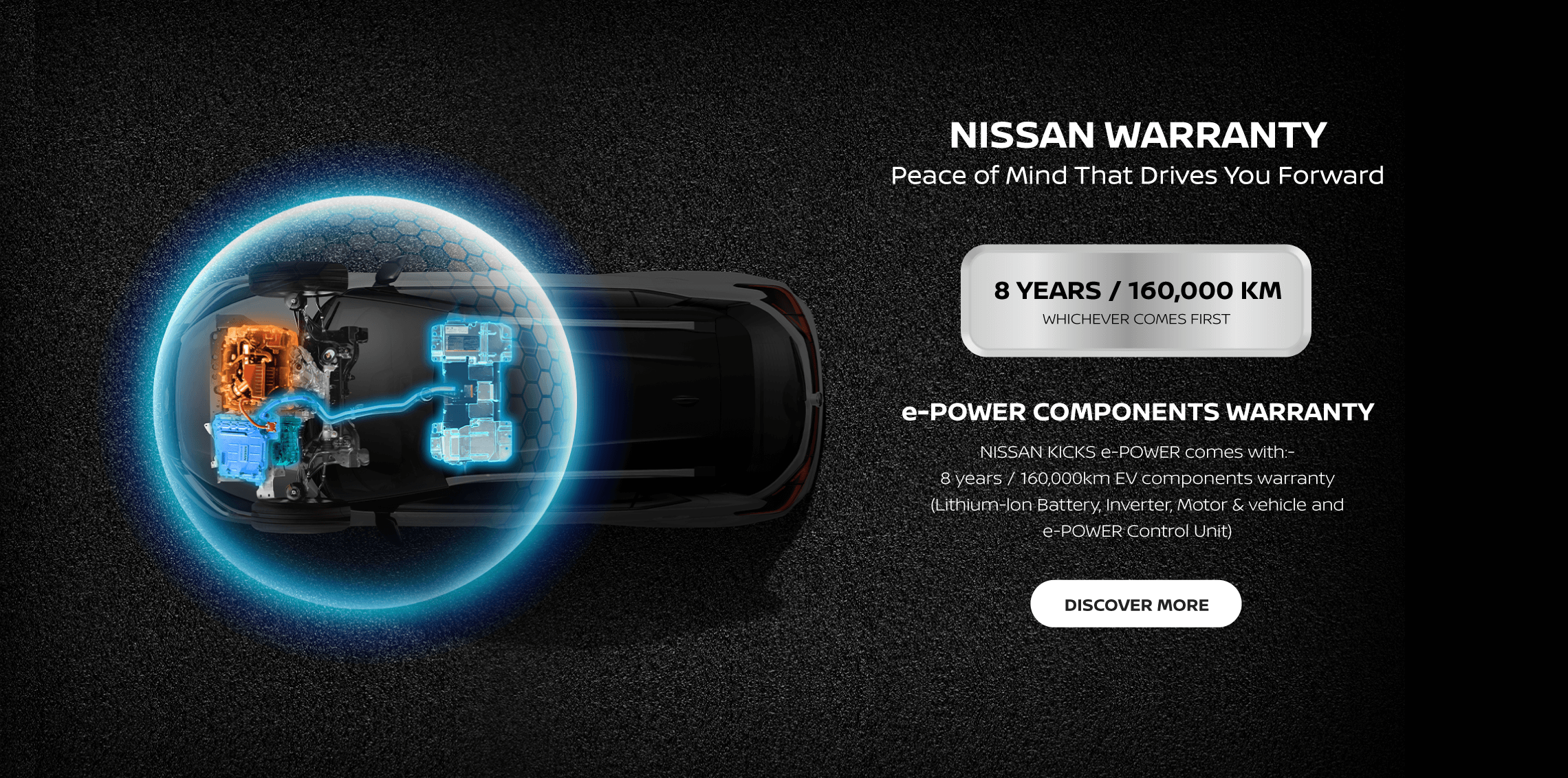 Experience unmatched peace of mind with The All-New Nissan KICKS e-POWER. Backed by a 5 years/100,000km new vehicle warranty and an 8 years/160,000km e-POWER component warranty, your journey is safeguarded every step of the way. Wherever the road takes you, count on Nissan’s commitment to deliver confidence and care.