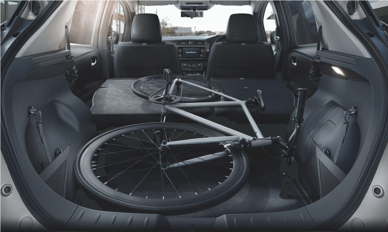 Nissan LEAF has a flexible cargo space that’s practically multidimensional. With 435 litres of cargo space when you fold the rear seats down, you’ll have no problem bringing a bike or carrying your gears on your next adventure.
