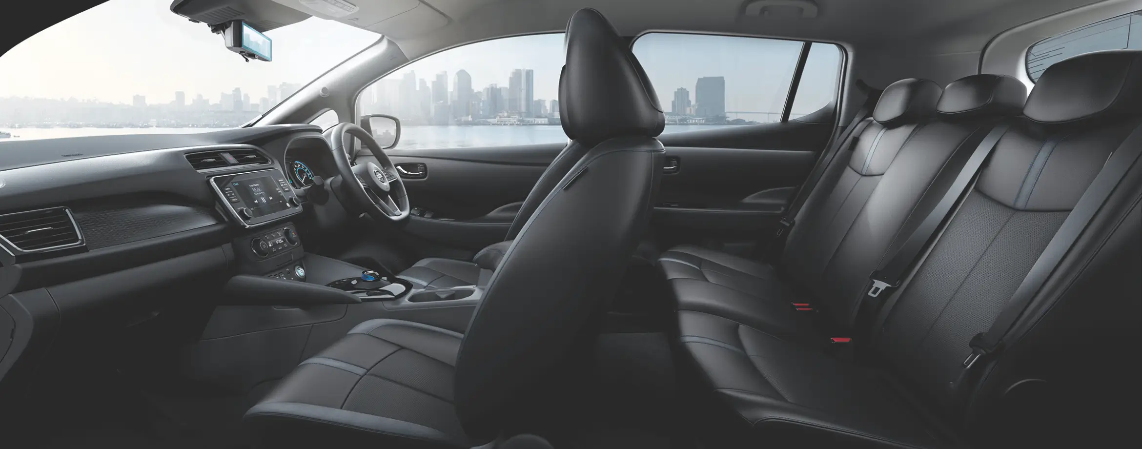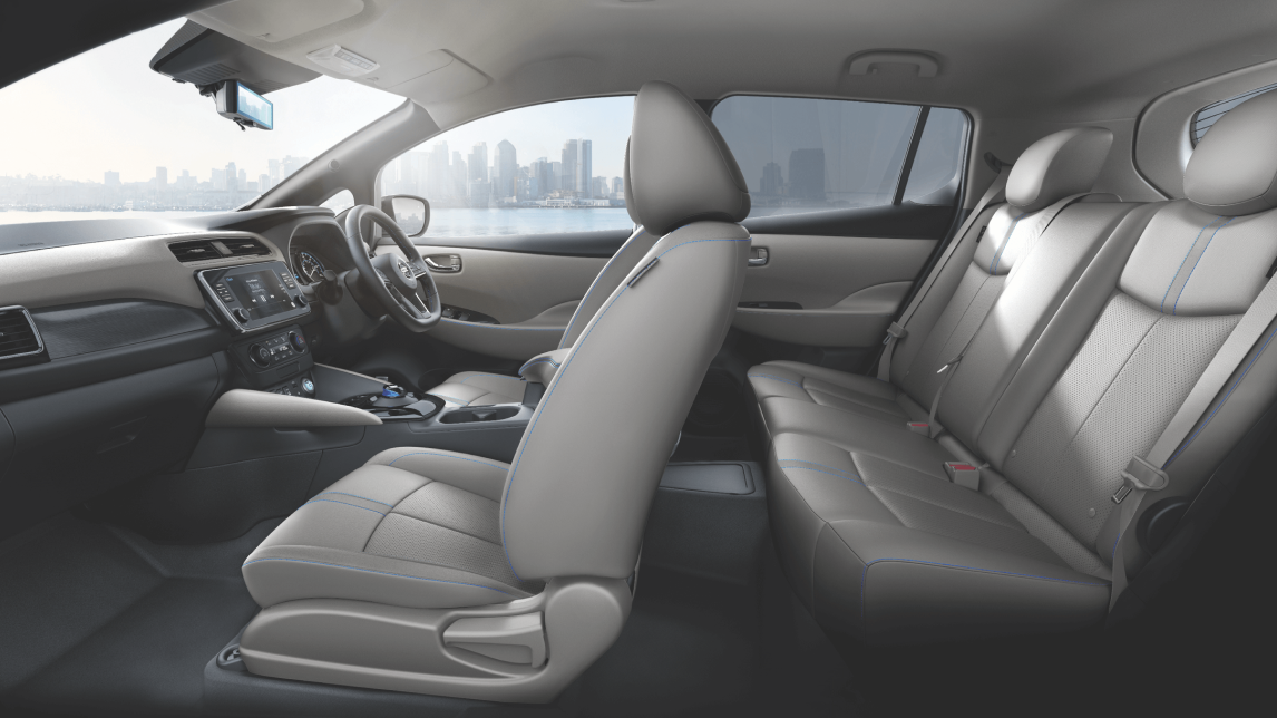 There’s no question, the New Nissan LEAF is striking from every angle. Its redesigned exterior capture attention with sleek lines and a dramatic signature V-Motion grille. Then pair with distinctive black accents 17″ Alloy wheel and sporty grey-accent diffuser.