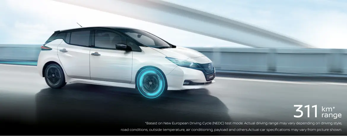 The NISSAN LEAF is an electric vehicle that boasts a battery with a capacity of up to 40 kWh and a powerful motor. With instant torque and impressive power, it can take you up to 311 km on a single charge. Plus, it maximizes installation space without sacrificing performance. Experience the unique character of this electric vehicle today.