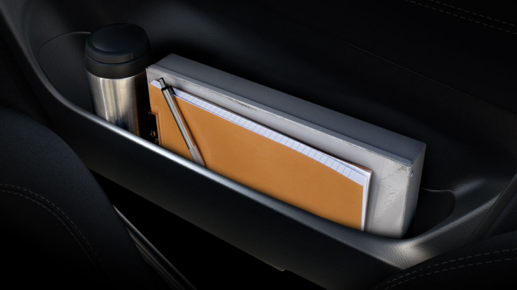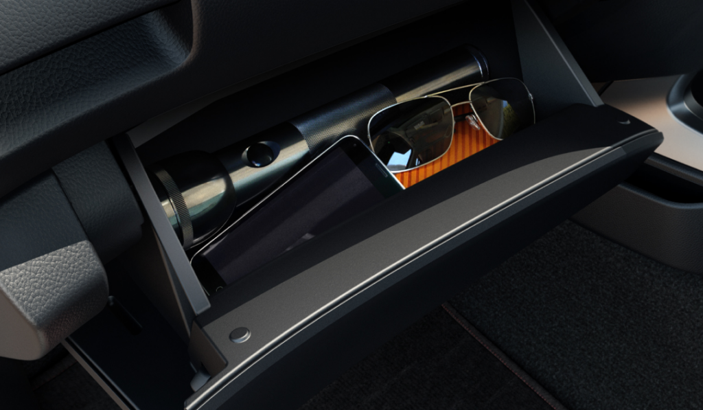 The glove compartment can keep pens, pencils, and important documents within easy reach.