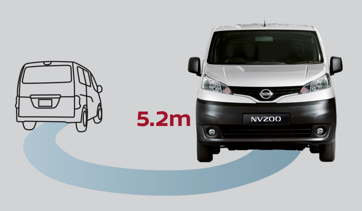 The NV200’s tight 5.2m turning radius allows you to effortlessly navigate through narrow paths and crowded areas.